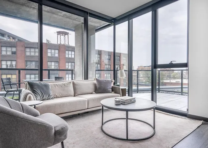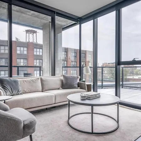 Een ingerichte keuken met koffie- en theefaciliteiten, een oven, keukengerei is beschikbaar als onderdeel van de zelfvoorzienende voorzieningen van het appartement. Het bevindt zich binnen 16 minuten rijden van Midway en op een klein stukje lopen van Chicago Union treinstation.